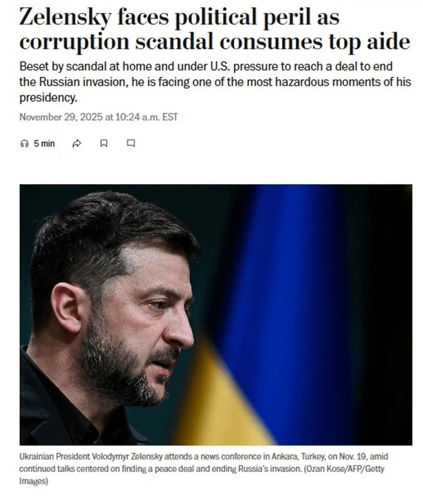 Er “afsløringen” virkeligt “resultatet af Ukraines forsøg på at trække sig fri af den korruptionskultur, diktaturet har efterladt sig”? Efter snart fire års krig, så er der nu endelig skred i den korruptionsbekæmpelse der blev indledt i 1991? Eller er “afsløringen” led i et stigende pres fra amerikansk side, på den ukrainske regering, i forsøget på en varig fred? Hvad handler de afsløringer egentlig om?